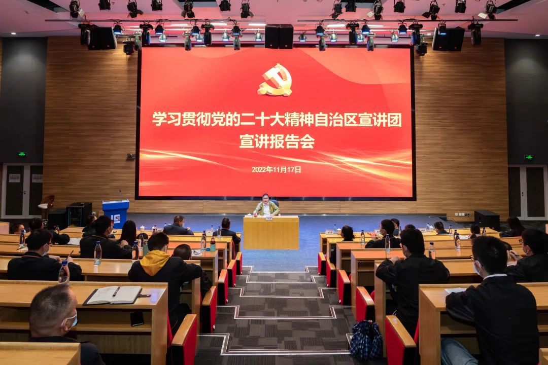 11月17日上午,學(xué)習(xí)貫徹黨的二十大精神自治區(qū)宣講團(tuán)宣講報(bào)告會(huì)在柳工全球研發(fā)中心召開。自治區(qū)宣講團(tuán)成員,自治區(qū)政府發(fā)展研究中心黨組書記、主任楊叢為柳工集團(tuán)黨員干部宣講黨的二十大精神。廣西柳工集團(tuán)有限公司黨委書記、董事長(zhǎng)鄭津主持報(bào)告會(huì)。
