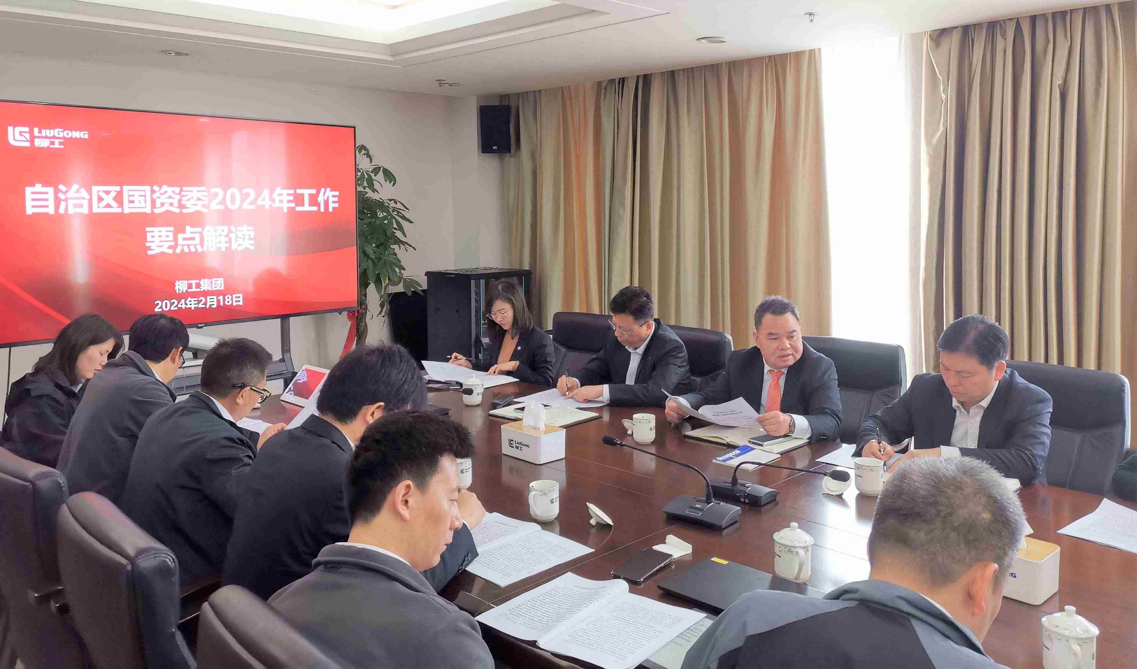 新年伊始,萬象更新。2月18日上午,春節(jié)收假后的第一個工作日,廣西柳工集團有限公司召開自治區(qū)國資委2024年工作要點解讀專題會議,傳達學習相關文件精神,并深入研究貫徹落實舉措。廣西柳工集團有限公司黨委書記、董事長鄭津主持會議,黨委副書記、副董事長、總經理王太平,黨委副書記、紀委書記、工會主席賴頌平,董事會秘書、行政總監(jiān)左芳等領導班子成員出席會議,職能部門總監(jiān)以及子公司運營相關負責人參加會議。