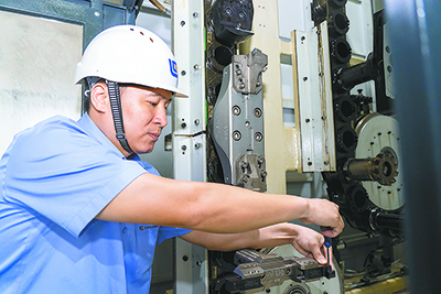 龐淇文35歲,13年工齡。如同數控機床“指揮家”,近2000把刀具,他蒙住雙眼,僅靠觸摸,就能準確識別其類型、作用。
