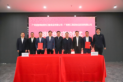 3月11日,食品公司與廣州酒家集團(tuán)利口福食品有限公司(下稱利口福公司)在桂味聯(lián)食品創(chuàng)新中心簽署戰(zhàn)略合作協(xié)議。