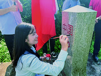 本次活動首站抵達(dá)崇左大新縣念典村念斗屯國界處,大家為國界界碑補(bǔ)色“煥新”,并在念斗村備戰(zhàn)洞紅色大講堂前共同重溫入黨誓詞、入團(tuán)誓詞。青年團(tuán)干們實(shí)地體驗(yàn)巡邊工作,沿邊境道路前行,目睹莊嚴(yán)界碑與祖國山河,切身感受到每一寸國土的珍貴與守護(hù)之責(zé),強(qiáng)化了國家安全意識,也堅(jiān)定了“守初心、擔(dān)使命”的政治自覺。大家深刻認(rèn)識到,邊境不僅是一道地理界線,更是國家主權(quán)與安全的屏障,而日復(fù)一日堅(jiān)守一線的巡邊人,正是愛國奉獻(xiàn)的鮮活榜樣。
