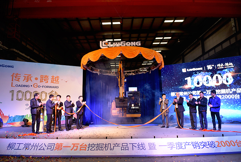 3月31日,柳工常州公司第10000臺挖掘機產品下線暨一季度產銷突破2000臺活動在常州舉行(如下圖)。